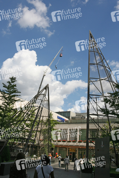 Erbaut 1998-2000, Architekt: Helmut Jahn, zeitgenössische Moderne, Höhe 60m, Kurfürstendamm, Voliere, Bungeejumper