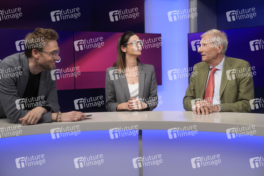 Veit Medick, Iris Sayram und Ulrich Wickert in der ARD-Talkshow 'maischberger' im Studio Berlin Adlershof. Berlin, 18.06.2025
