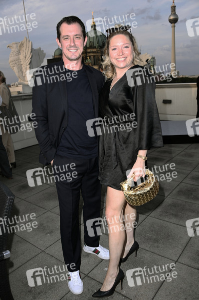 Caroline Frier mit Begleitung beim Eröffnungsempfang der UFA Filmnächte 2025 auf der Dachterrasse der Bertelsmann Repräsentanz. Berlin, 27.08.2025