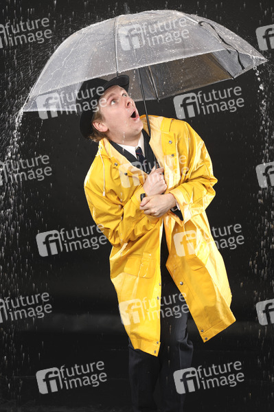 Fotoshooting, Unterhaltung, Entertainment, Kultur, Singin' in the Rain, Singing in the Rain, Musical, Regen, Wetter, Regenschauer, Nieselregen, Platzregen, Niederschlag, Gewitter, Wasser, Wetterprognose, Wettervorhersage, Regenschirn, Schirm, Regenjacke, Südwester, Regenkleidung, Regenwetter, Symbolbild, Symbolfoto