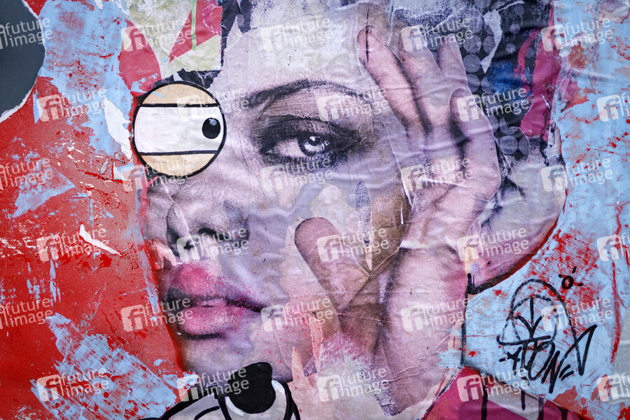 Ein Konterfei von Rihanna zeigt die Sängerin mit einem Auge. Köln, 01.03.2020