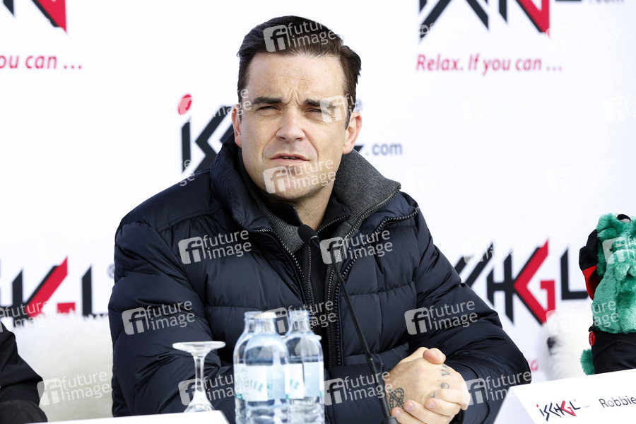 Robbie Williams beim Pressetermin vor seinem 'Top Of The Mountain Concert' auf der Idalp. Ischgl, 03.05.2014