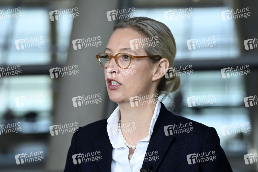 Politik, Statement, Pressekonferenz, PK, Reichstag, Deutscher Bundestag, Demokratie, Parlament, Parlamentsgebäude, Volksvertreter, MdB, Mitglied des Bundestages, Abgeordnete, Politikerin, Vorsitzende der AfD-Bundestagsfraktion, Bundessprecherin der AfD