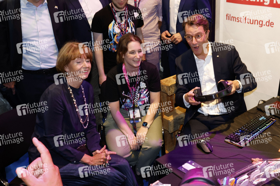 Henriette Reker (Oberbürgermeisterin von Köln) und Hendrik Wüst (Ministerpräsident von Nordrhein-Westfalen) auf der weltgrößten Computerspielmesse Gamescom 2024 in der KoelnMesse. Köln, 21.08.2024