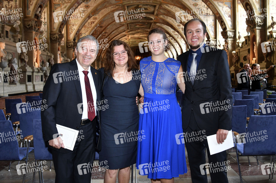 Günther Sigl mit Ehefrau Doris Sigl, Tochter Anna Sigl und Sohn Phillip Sigl bei der Verleihung des Bayerischen Verdienstordens 2019 im Antiquarium der Münchner Residenz. München, 22.07.2019