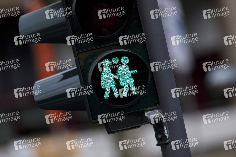 Verkehr, Lichtzeichenanlage, Fußgänger, Füßgängerampel, Fußgängersignal, Rotphase, Grünphase, Ampelmännchen, Ampelfrauen, Ampelmänner, Ampelweibchen, gleichgeschlechtliche Ampelmännchen, homosexuelle Ampelmännchen, Homo-Ampelmännchen, Schwule, Lesben, schwul, lesbisch, Gay, Gay Pride, Lesbian, queer, transsexuell, Trans, Cologne Pride, Lesbe, Schwuler, Bisexuelle, Transgender, Intersexuelle, Homosexuelle, hetero, bisexuell, Toleranz, Gleichberechtigung, Ehe für alle, Gleichgeschlechtliche Ehe, Homo-Ehe, gegen Diskriminierung und Ausgrenzung, Bewegung, Politik, Kultur, Solidarität, Akzeptanz, Lesben- und Schwulenbewegung, Paragraph 175, bisexual, Homosexualität, Gays, Schwulenhauptstadt, Homo-Hauptstadt, Gay Community, Transvestit, Transvestiten, Coming-Out, sexuelle Orientierung, Homosexuelle, Transsexuelle, Transgender, Intersexuelle, Bisexuelle, Homoehe, Homophobie, CSD, LGBT, LGBTI, GLBT, LSBTTIQ, gleichgeschlechtlich, Liebe, Sexualität, gleichgeschlechtliche Liebe, Outing, Coming Out, Symbolbild, Symbolfoto