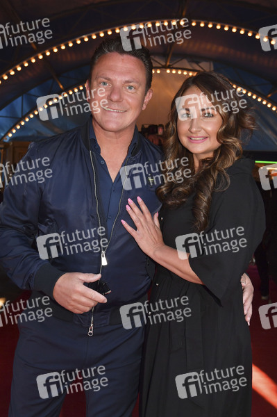 Stefan Mross mit Partnerin Eva Luginger bei der Premiere des Circus Krone Tourneeprogramms 'Farbenspiel - Gold Edition' im Circus Krone Zelt auf der Theresienwiese. München, 10.04.2025