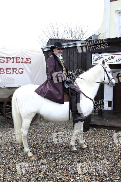 Prominenz, Fototermin, Pressetermin, Photocall, Fotocall, Unterhaltung, Entertainment, Kultur, Western, Freilichtbühne, Freilichttheater, Freilufttheater, Kalkbergstadion, Open Air Theater, 69. Karl-May-Spiele 2020, Der Ölprinz, Tier, Pferd, Schauspieler