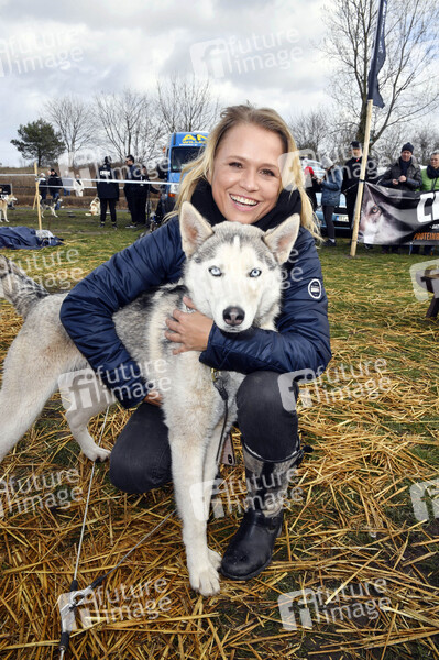 Moderatorin, Schauspielerin, Prominenz, Celebrity, Celebrities, Tier, Hund, Hunde, Huskys, Husky, Unterhaltung, Entertainment, Schlittenhunderennen, Ostsee, Sport, Charity, Benefiz