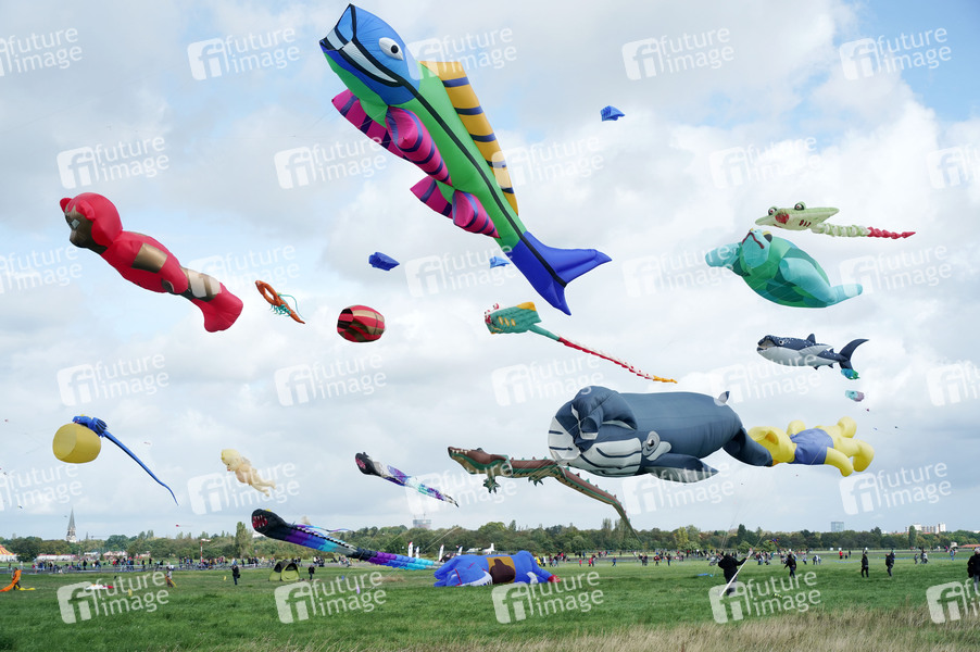 Beim neunten Festival der Riesendrachen in Berlin sorgten bis zu 40 Meter lange Unikate für ein Flugspektakel über dem Tempelhofer Feld. Berlin, 17.09.2022