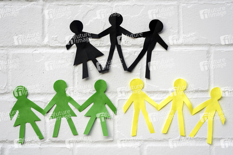 Pappfiguren mit der Farbe einer Jamaika-Koalition. (Fotomontage, Themenbild, Symbolbild)