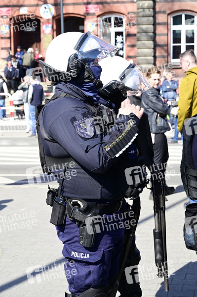 Polizei bei der Demo von rechten und nationalen Gruppen aus Polen gegen die deutsche Asylpolitik am Grenzübergang Görlitz/Zgorzelec - Stadtbrücke, welche aus Sicherheitsgründen mehrere Stunden gesperrt war. Görlitz/Zgorzelec, 22.03.2025