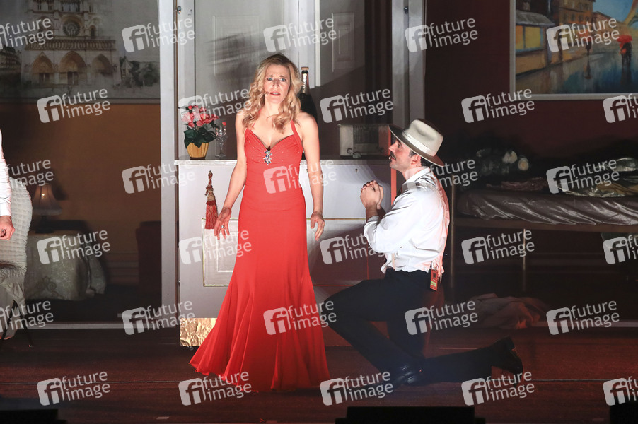 Stefanie Hertel und Sascha Hödl bei der Musicalpremiere 'Ganz Paris träumt von der Liebe' im Kulturhaus. Gotha, 12.04.2024