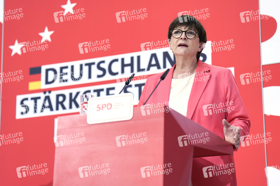 Saskia Esken bei der Pressekonferenz der SPD zu aktuellen Themen im Willy-Brandt-Haus. Berlin, 13.05.2024