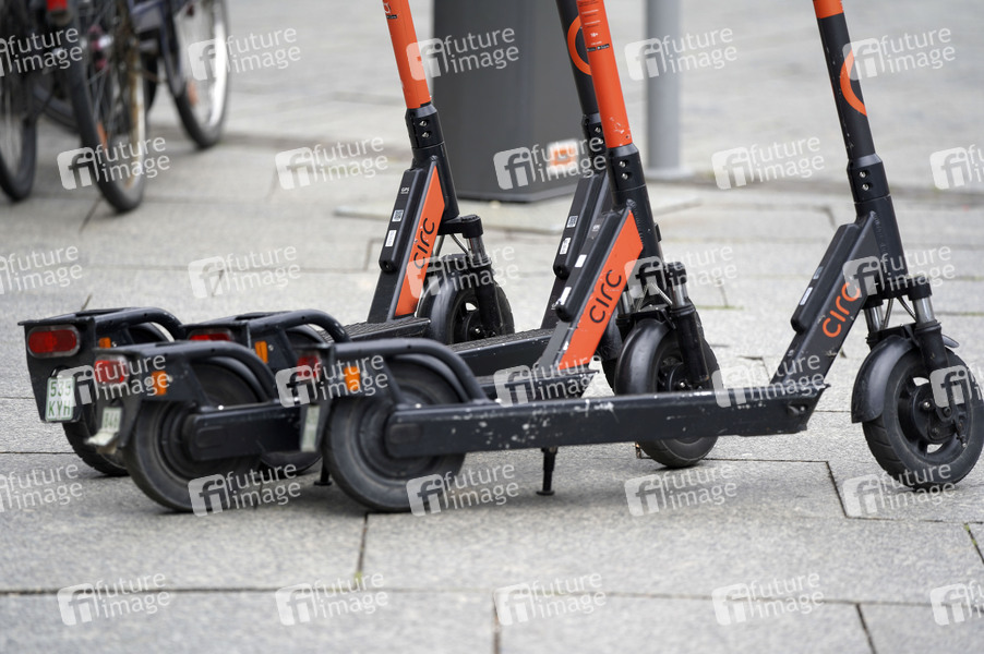 E-Scooter des Anbieters circ am Bahnhofsvorplatz. Köln, 18.08.2019