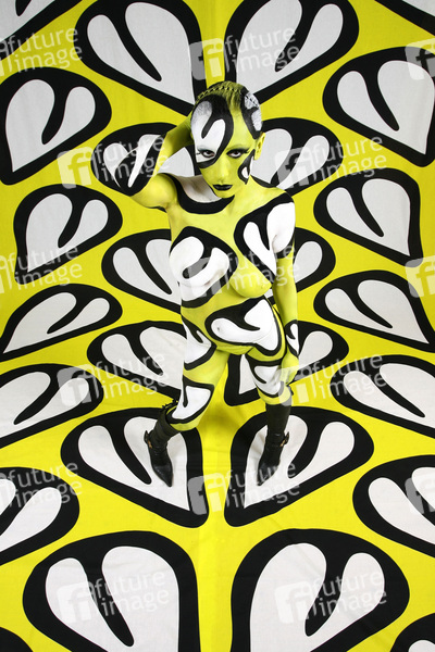 Bodypainting, Stoffdesign Anna Efverlund, Erotik, Frau, nackt, drinnen, weiblich, Muster, Chamäleon, erotic, woman, nude, indoor, female, chameleon