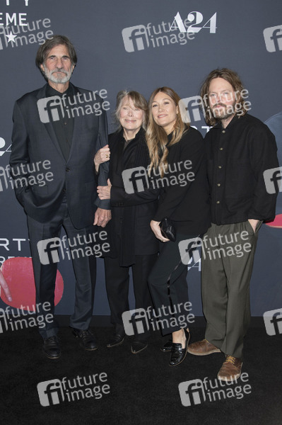 Jack Fisk mit Ehefrau Sissy Spacek, Tochter Schuyler Fisk und Gast bei der Premiere des Kinofilms 'Marty Supreme' im Regal Times Square. New York, 16.12.2025