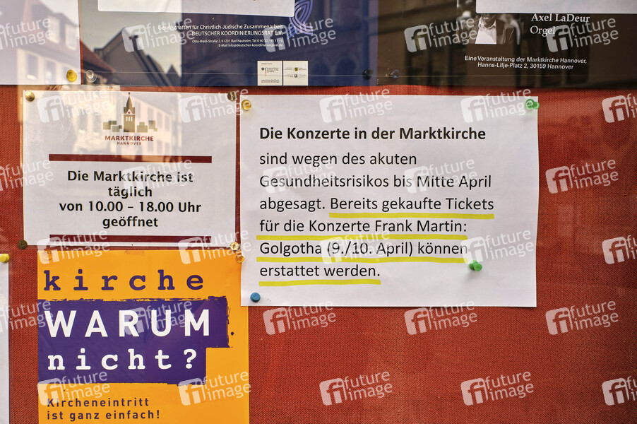Ausfall der Gottesdienste und Veranstaltungen der ev.-luth. Kirchen wegen des Coronavirus im Stadtkirchenverband in der Marktkirche. Hannover, 15.03.2020