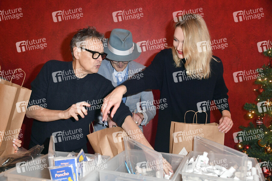 Rolf Scheider, Günther Krabbenhöft und Victoria Jancke bei der Veranstaltung 'Strassenfeger x Maximilian Seitz - Weihnachtsgeschenke einpacken für Obdachlose und Bedürftige' im Hotel Q!. Berlin, 08.12.2021