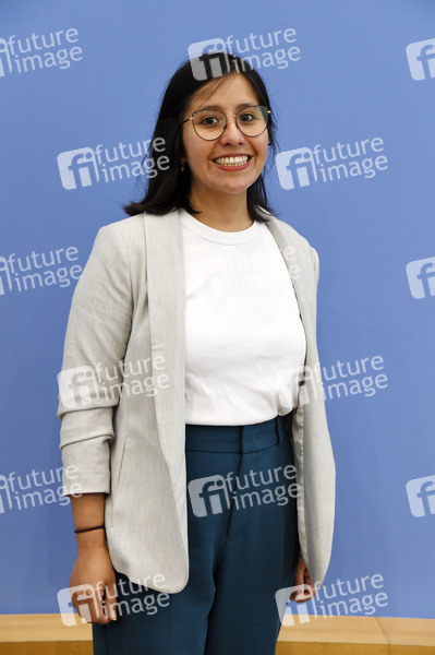 Katja Gallegos Torres bei der Bundespressekonferenz 'Deutschland als Zwischenstation? Rückkehr- und Weiterwanderungsabsichten von Eingewanderten im Lichte neuer Daten' im Haus der Bundespressekonferenz. Berlin, 11.06.2025