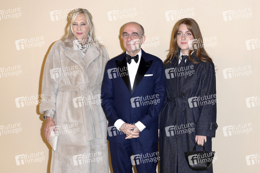 Roberta Pacetti, Giuseppe Tornatore und Marianna Tornatore bei der Premiere des Kinofilms 'Brunello, il visionario garbato' in den Cinecittà Studios. Rom, 04.12.2025