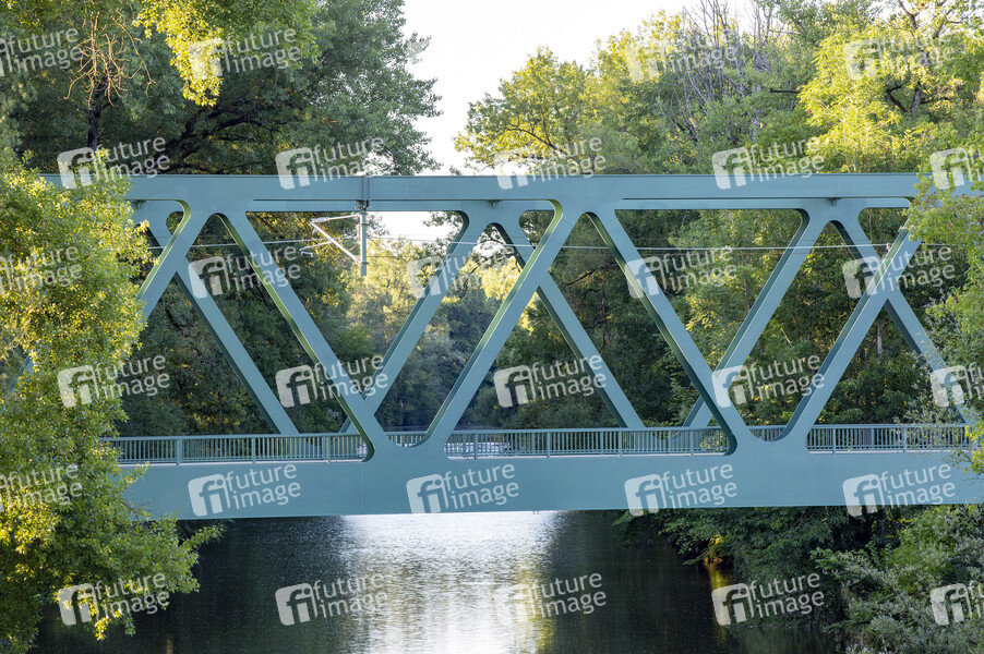 Oberleitungsträgerwerk an der neuen Argenbrücke an der Ausbaustrecke der neu elektrifizierten Südbahn im Teilabschnitt von Friedrichshafen nach Lindau. Lindau, 01.07.2020