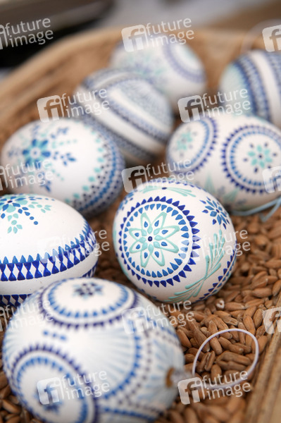Sorbische Ostereier von Kugelei.com. Das Gelbe vom Ei - kunsthandwerklicher Ostermarkt auf dem Karl-August-Platz in Charlottenburg (Symbolfoto, Themenfoto). Berlin, 24.03.2024