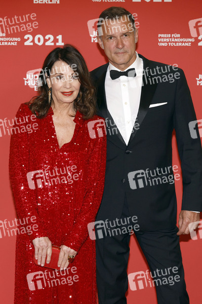 Iris Berben mit Partner Heiko Kiesow bei der Verleihung des 'Preises für Verständigung und Toleranz' im Glashof des Jüdischen Museums. Berlin, 13.11.2021