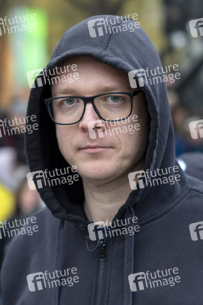 Nico Semsrott bei der PRÜF! - Auftakt-Demo zum Start einer Kampagne für die Prüfung aller als rechtsextrem eingestuften Parteien. Hamburg, 08.11.2025