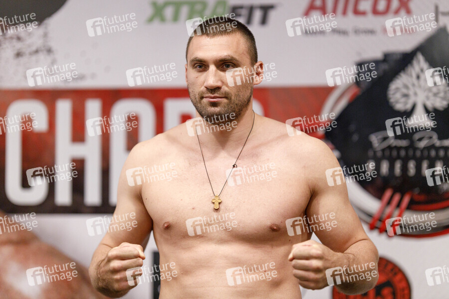Victor Faust (UKR) beim Wiegen vor dem Boxen-Event ECB Fightnight im Lindner Hotel City Plaza. Köln, 14.05.2021