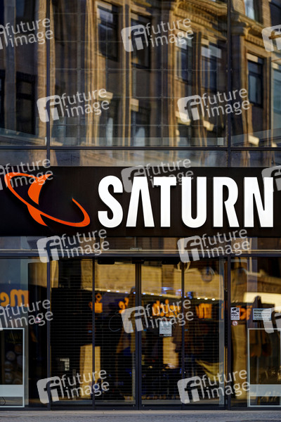Saturn-Filiale, Saturn-Store, Saturn-Markt, Saturn-Logo, Saturn-Schriftszug, Planet, Elektroartikel, Elektronikhändler, Elektromarkt, Elektromärkte, Geräte, Elektrogeräte, Fachhandel, Media-Saturn, MediaMarktSaturn Retail Group, Ceconomy, Unterhaltungselektronik, Metro, Metro-Konzern, Slogan Geiz ist geil, Saturn Card, Null Prozent Finanzierung, Saturn Prospekt, CDs, DVDs, BluRays, Computerspiele, Videospiele, Schallplatten, Waschmaschinen, Computer, Laptops, PC, Laptop, Kopfhörer, Waschmaschine, Kühlschrank, Küchengeräte, Haushaltsgeräte, Staubsauger, eScooter, Elektronik, Lautsprecher, Angebote, SSD, Tablet, Handy, Handyverträge, Konsum, Konsumgesellschaft, Geschäft, Corona, Coronavirus, Corona-Virus, Coronakrise, Corona-Krise, Elektromärkte, Geschäftsschließung, Geschäftsschließungen, Corona-Maßnahmen, Umsatz, Symbolbild, Symbolfoto