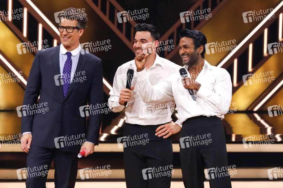 Daniel Hartwich, Stefano Zarrella und Biyon Kattilathu bei der Kennenlern-Show der 17. Staffel der RTL-Tanzshow 'Let's Dance' im MMC Coloneum. Köln, 23.02.2024