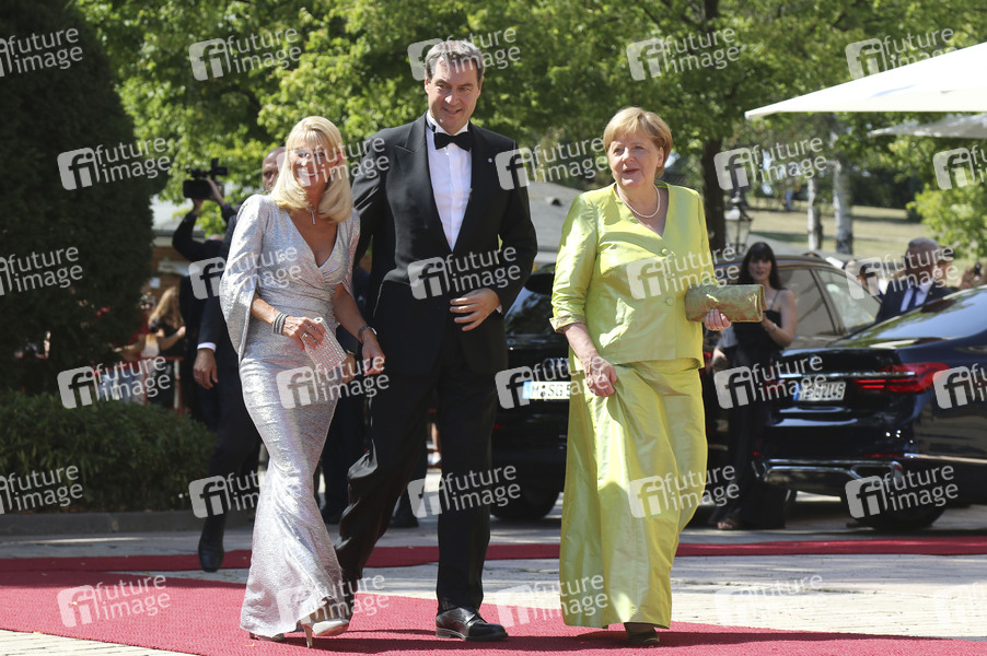 Markus Söder mit Ehefrau Karin Söder, Angela Merkel