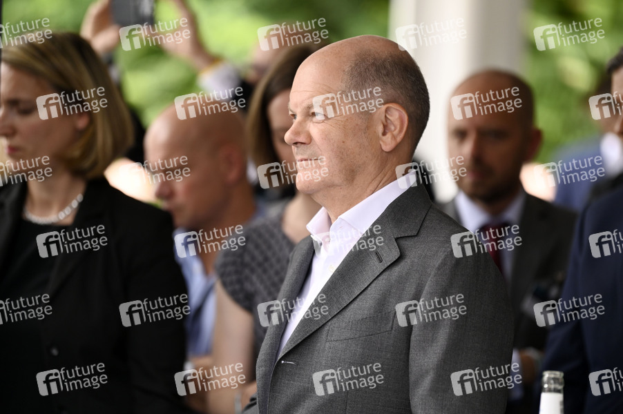 Olaf Scholz bei der Grundsteinlegung für das zukünftige Quartier Siemensstadt Square am Rohrdamm. Berlin, 25.06.2024