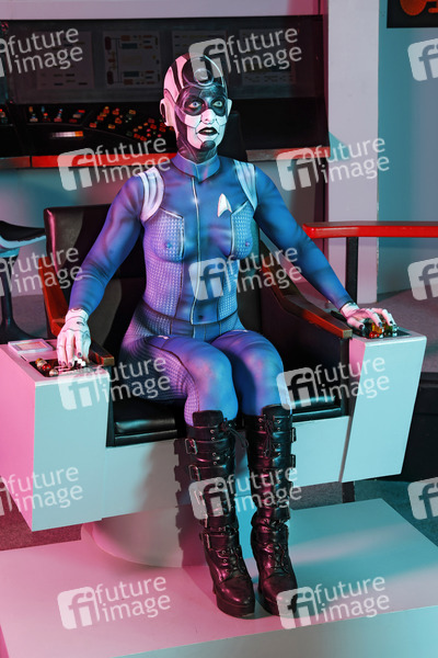 GEEK ART - Bodypainting meets SciFi, Fantasy and more: 'Star Trek Discovery' Photoshooting mit Model Barbara Wegener als Airiam auf der Brücke vom Raumschiff Enterprise im Filmwelt Center. Bad Münder, 18.04.2019 - Ein Projekt des Fotografen Tschiponnique Skupin und des Bodypainters und Transformakers Enrico Lein
