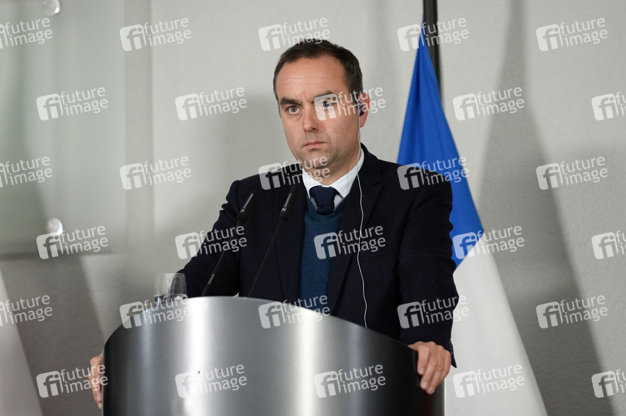 Sebastien Lecornu beim Treffen zum Gespräch mit drei Amtskollegen und einer Unterstaatssekretärin aus vier europäischen Ländern über die Stärkung der europäischen Sicherheit und Verteidigung mit anschließendem gemeinsamen Pressestatement im Bundesministerium der Verteidigung. Berlin, 25.11.2024