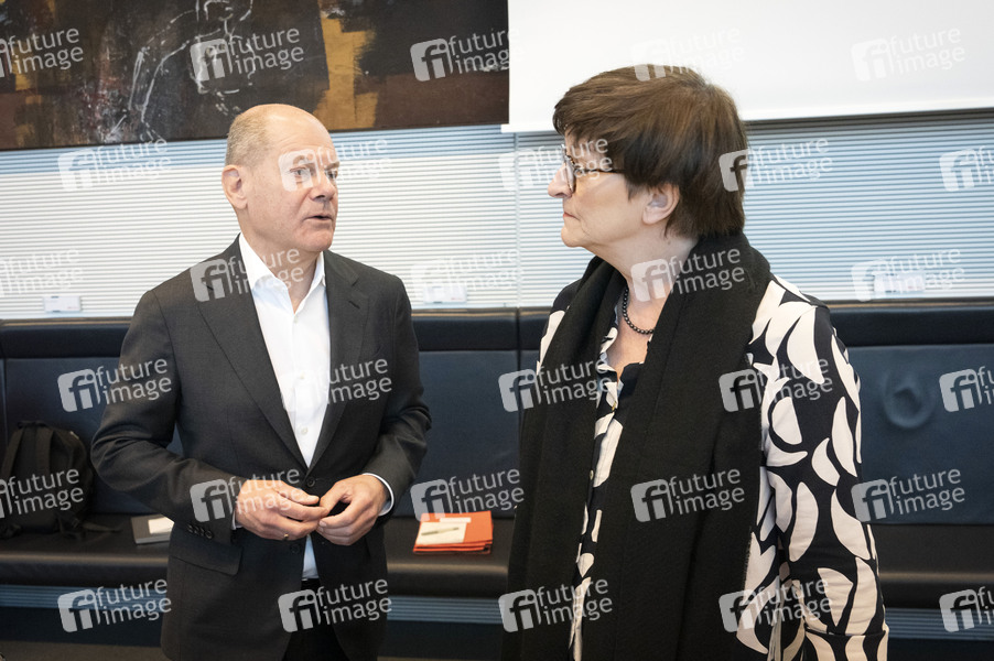Olaf Scholz und Saskia Esken bei der Fraktionssitzung der SPD-Bundestagsfraktion im Reichstagsgebäude. Berlin, 10.03.2025