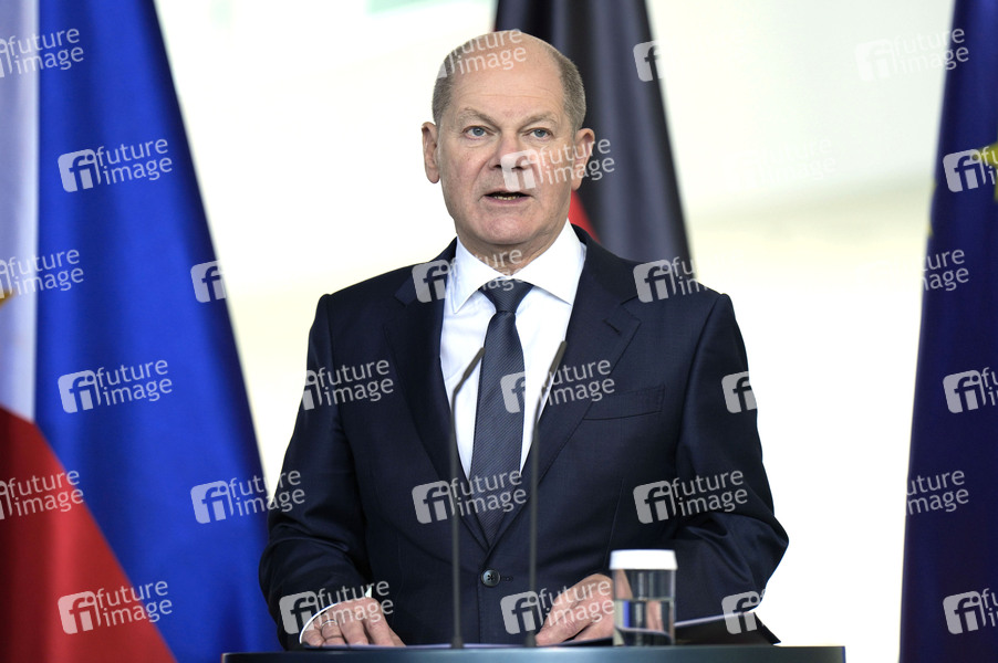 Olaf Scholz beim Empfang des Staatspräsidenten der Republik der Philippinen mit militärischen Ehren und zu einem gemeinsamen Gespräch mit dem Bundeskanzler und anschließendem Pressestatement im Bundeskanzleramt. Berlin, 12.03.2024