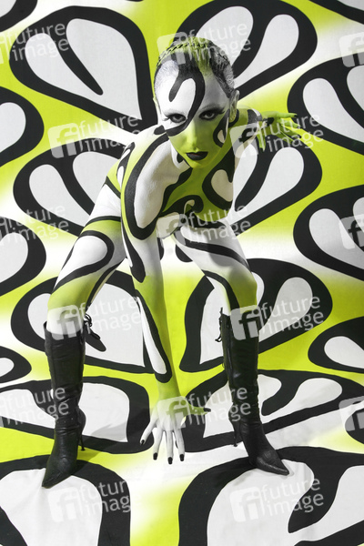 Bodypainting, Stoffdesign Anna Efverlund, Erotik, Frau, nackt, drinnen, weiblich, Muster, Chamäleon, erotic, woman, nude, indoor, female, chameleon