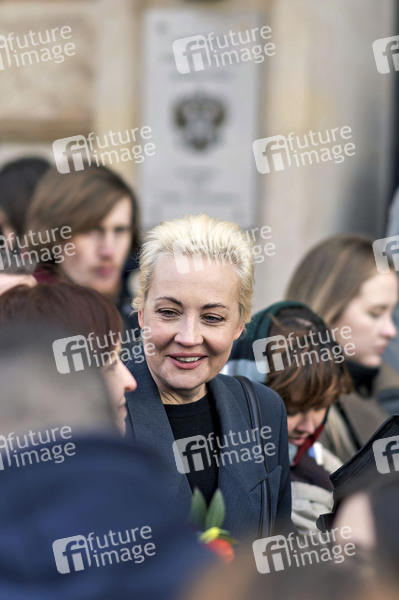 Julija Nawalnaja mit Menschen aus Russland bei der Stimmabgabe zur russischen Präsidentschaftswahl in der Botschaft von Russland. Dabei kam es zu Protesten gegen Wladimir Putin. Berlin, 17.03.2024