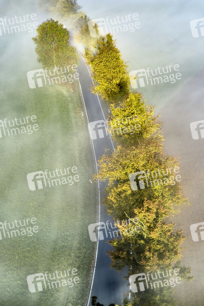 Morgennebel, Nebel, Hochnebel, vernebelt, Sichtweite, Wettervorhersage, eingeschränkte Sicht, diesig, schlechte Sicht, Sichtbehinderung, Wetter, Verkehr, Unfallgefahr, Kondensation, Luftaufnahme, Luftbild, Drohne, Drohnenaufnahme, Symbolbild, Symbolfoto