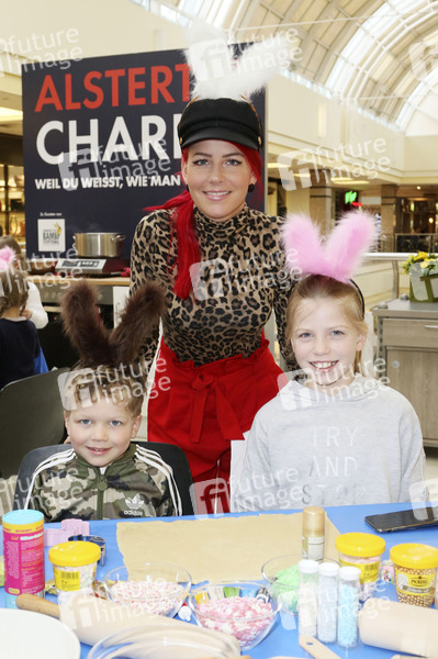 Dana Diekmeier mit Tochter Delani und Sohn Dion beim Promi-Osterbacken zugunsten der Tribute to Bambi Stiftung im Alstertal-Einkaufszentrum. Hamburg, 28.03.2019