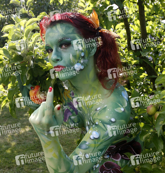 Bodypainting, Erotik, Frau, nackt, draußen, weiblich, Apfel, Apfelbaum, Baum, woman, nude, outdoor, female, erotic, apple, tree