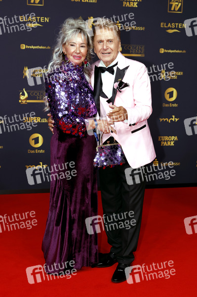 Hans-Jürgen Beyer mit Partnerin Manuela Hebestreit bei der 31. Verleihung der Goldenen Henne 2025 in der Leipziger Messe. Leipzig, 12.09.2025