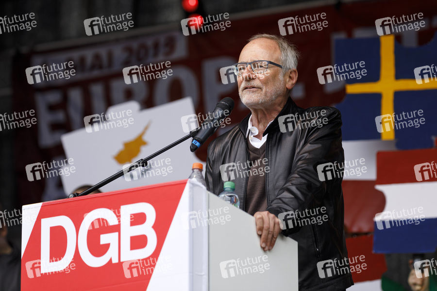 Steffen Lehndorf, Forscher am Institut Arbeit und Qualifikation, nimmt an der Mai-Demo auf dem Heumarkt teil. Köln, 01.05.2019