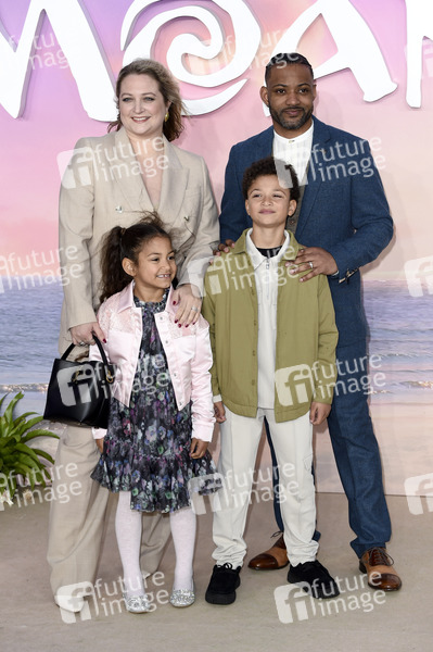 JB Gill mit Ehefrau Chloe Tangney und Kindern Chiara Sapphire Gill und Ace Jeremiah Gill bei der Premiere des Animationsfilms 'Moana 2 / Vaiana 2' im Cineworld Leicester Square. London, 24.11.2024