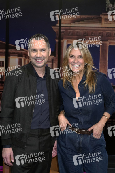 Sebastian Fitzek und Kim Fisher bei der Aufzeichnung der MDR/rbb-Talkshow 'Riverboat' im Studio A im rbb Fernsehzentrum. Berlin, 15.10.2021