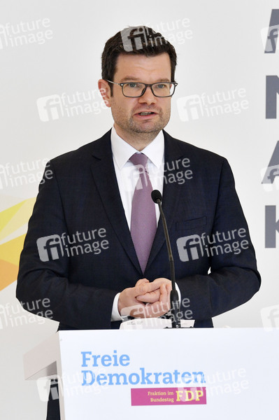 Marco Buschmann bei einem Pressestatement der FDP vor der Fraktionssitzung auf der Fraktionsebene im Reichstagsgebäude. Berlin, 13.04.2021