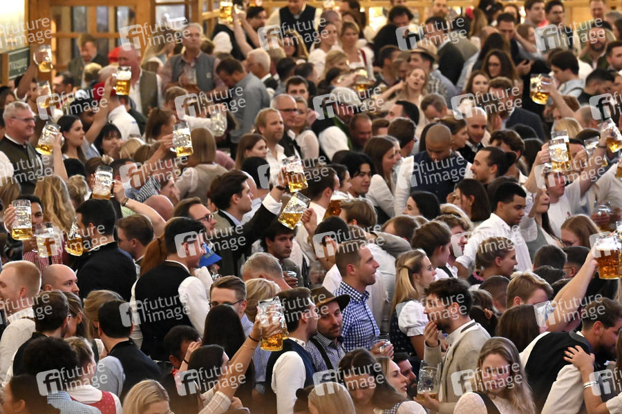 Stimmung in Schützen-Festzelt beim Oktoberfest 2022 auf der Theresienwiese. München, 25.09.2022