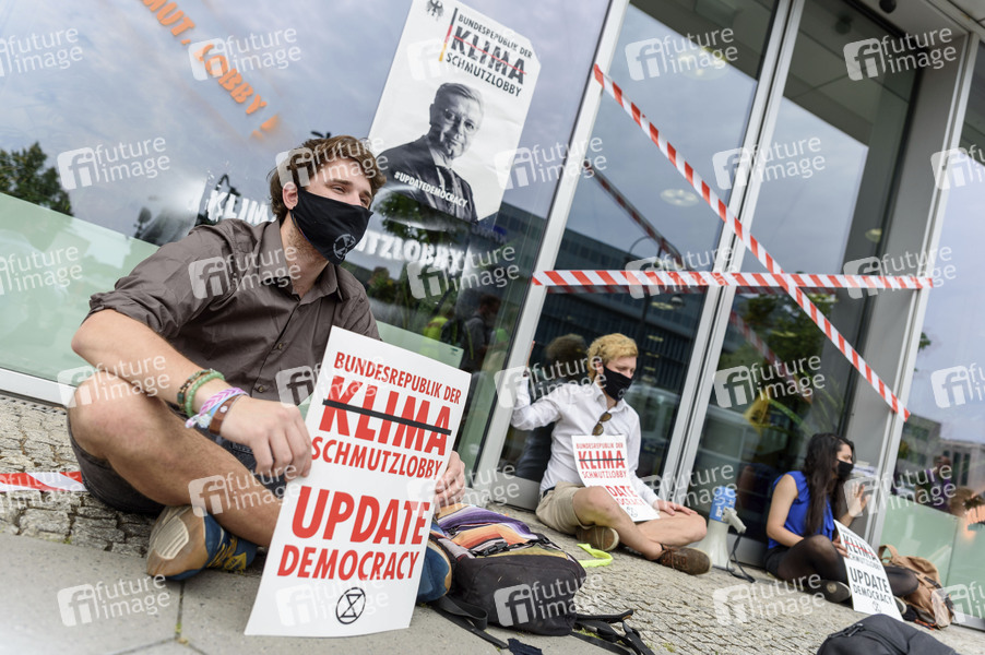 Umwelt-Aktivisten von Extinction Rebellion (XR) blockieren den Zugang zur CDU-Bundesgeschäftsstelle Konrad-Adenauer-Haus aus Protest gegen die klimaschädliche Politik der CDU. Vier Aktivisten haben sich an der Eingangstür zur Parteizentrale festgeklebt. Diese Aktion des zivilen Ungehorsams ist Teil der Aktionswoche gegen klimafeindliche Wirtschaftspolitik. Berlin, 18.06.2020